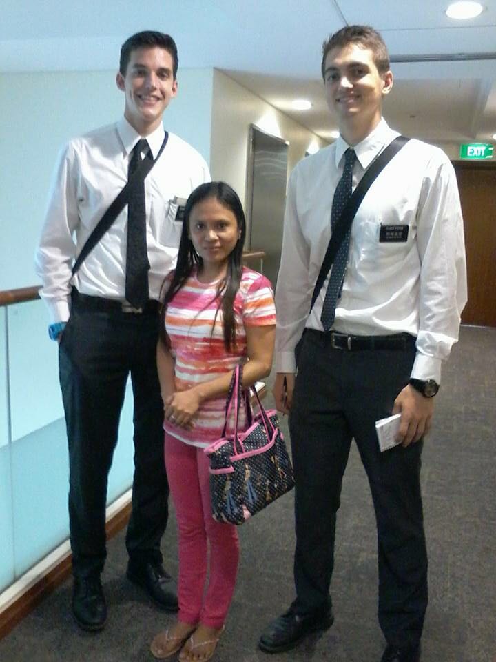 #2 is Resa. We met her after praying at Botanic Gardens in Singapore because we were lost and didn't know what to do. We went to this hut and there was a Filipino reading the Bible. We read with her and invited her to learn about the Book of Mormon. Yesterday she was baptized and then gave a (no joke) 40 min long testimony. It was the longest baptismal service I have ever been to! I was able to baptize her and I baptized her in Tagalog!